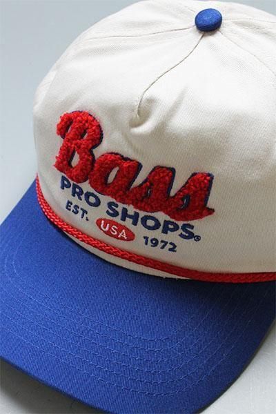 BassProShopsは1970年代に、創業者(現:CEO)のジョン(ジョニー)・モリスが米国ミズーリ州で父親の経営する酒屋の裏で始めた釣り餌販売業から始まる。その後釣り具・アウトドア用品のカタログ販売事業を成功させ、現在は大型店を全米展開するにいたり、スポーツ用品販売業としてはSports Authority(スポーツオーソリティ)などと並ぶ全米最大級の小売チェーンとなっている。創業当時は釣り用品の販売が中心であったが、現在は銃器や狩猟用品を筆頭にゴルフ用品やアパレル関連なども売上げの多くを占めるようになり、オリジナル商品やプライベート・ブランドの展開、大手ブランドとの提携も進んでいる。そんなBassProShopsのプライベートブランドからCAPが入荷しました。90'sの雰囲気のあるオールドなデザイン。スナップバックタイプでサイズ調節も可能です。