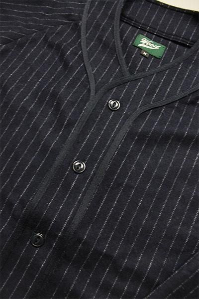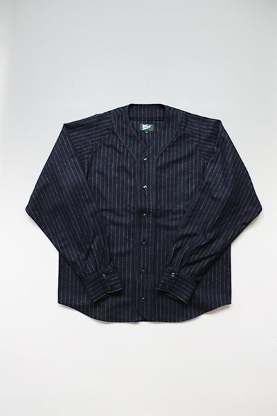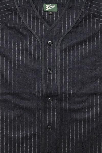 WOODBLOCK WOOL STRIPE BASEBALL SHIRT NAVY STRIPE【NVY】